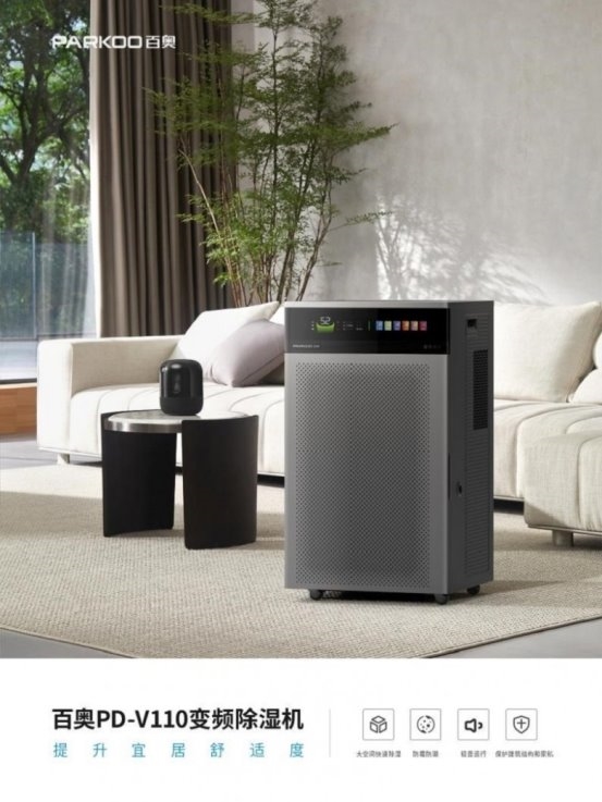 商用除湿机系列:针对工业仓库、地下车库、档案室等高湿环境,百奥将展出具备大除湿量、高耐用性、可连续排水等特点的专业级设备。其中PD-V110变频除湿机作为本次展出的技术标杆,搭载全直流变频压缩机,可依据环境湿度智能调节运行频率,在实现精准恒湿的同时,达成显著的节能降噪效果。展示了百奥在满足复杂工况的同时,对用户体验的极致追求,重新定义了商用设备的品质标准。